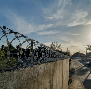 Alto Poder de Dissuasão Psicológica: A aparência agressiva das lâminas cortantes é um forte desestímulo visual para invasores. A simples presença da concertina já transmite uma mensagem clara de que a propriedade está protegida e que qualquer tentativa de invasão será arriscada e dolorosa.